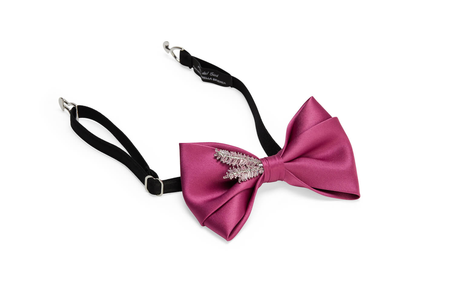 Our bow ties are made in Italy products and every single one of them is manufactured by the same hands. The galvanisation of the metal latches guarantees a fine and long-lasting colouring; this is achieved in a manual (not industrial) process by submerging each piece individually in a bath of molten metal. The adjustable elastic strap is practical and comfortable to use.