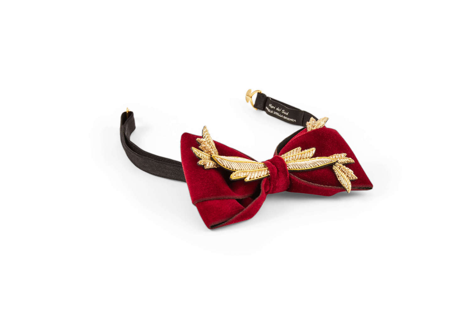 Our bow ties are made in Italy products and every single one of them is manufactured by the same hands. The galvanisation of the metal latches guarantees a fine and long-lasting colouring; this is achieved in a manual (not industrial) process by submerging each piece individually in a bath of molten metal. The adjustable elastic strap is practical and comfortable to use.
