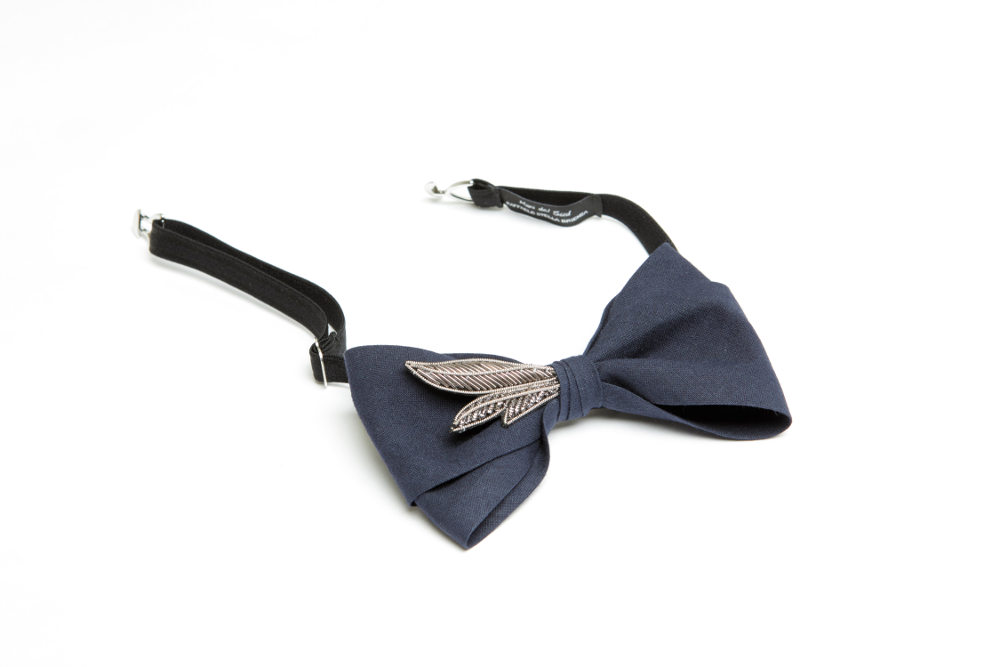 Our bow ties are made in Italy products and every single one of them is manufactured by the same hands. The galvanisation of the metal latches guarantees a fine and long-lasting colouring; this is achieved in a manual (not industrial) process by submerging each piece individually in a bath of molten metal. The adjustable elastic strap is practical and comfortable to use.