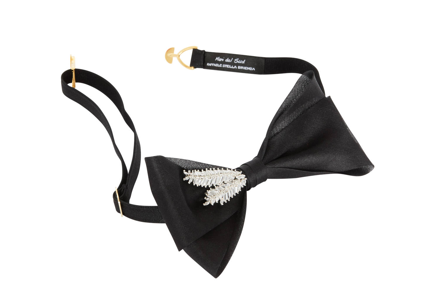 Our bow ties are made in Italy products and every single one of them is manufactured by the same hands. The galvanisation of the metal latches guarantees a fine and long-lasting colouring; this is achieved in a manual (not industrial) process by submerging each piece individually in a bath of molten metal. The adjustable elastic strap is practical and comfortable to use.